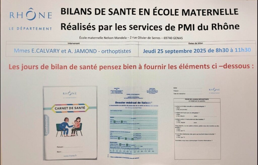 Tous les élèves de PETITE SECTION feront un bilan avec les orthoptistes jeudi 25 septembre le matin