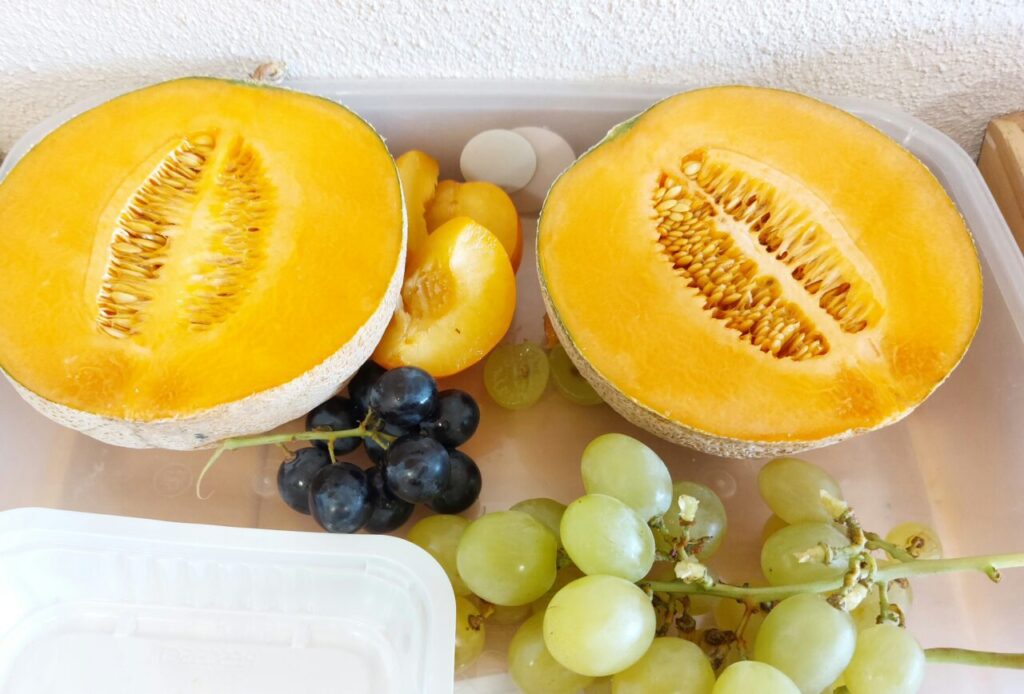 Début octobre nous avons dégusté : du melon, du raison blanc, du raisin noir et des prunes jaunes.