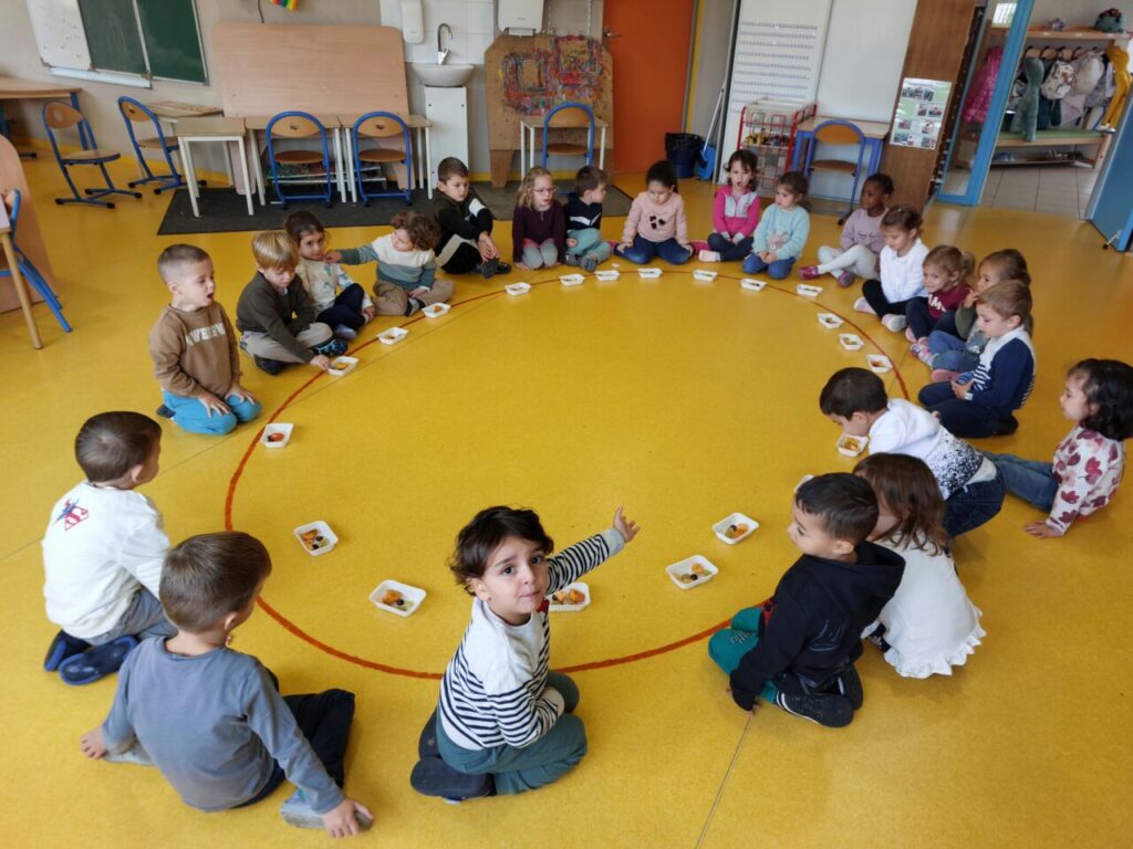 C’est pourquoi dans le cadre de l’éducation à l’alimentation et au goût, nous dégustons à cette occasion des fruits de saison apportés par les familles des enfants qui fêtent leur anniversaire.